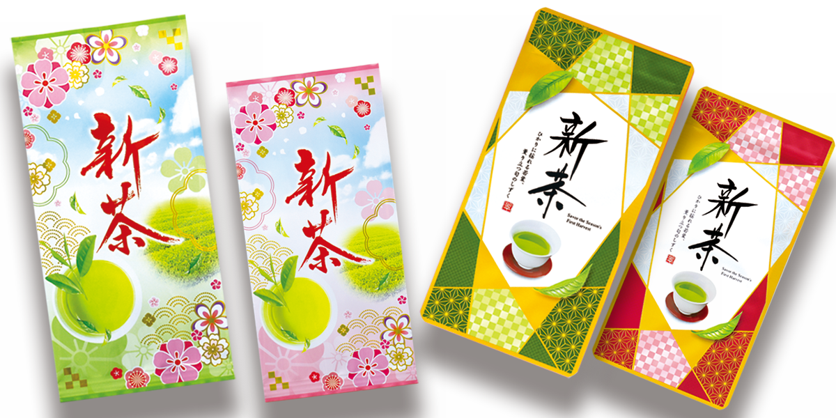 最新の新茶パッケージを多数展示しています。2026年の新茶カタログに掲載されているパッケージを始め、毎年ご好評いただいているカタログには掲載されていない、特売品コーナーもございます。